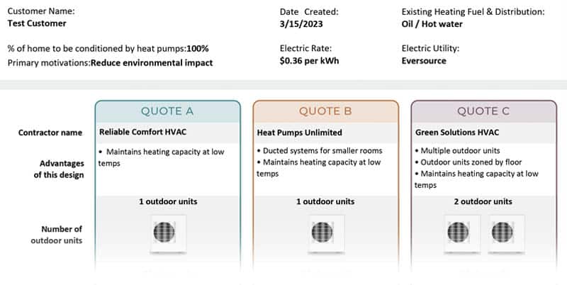 - Heat pump quote comparison analysis and report